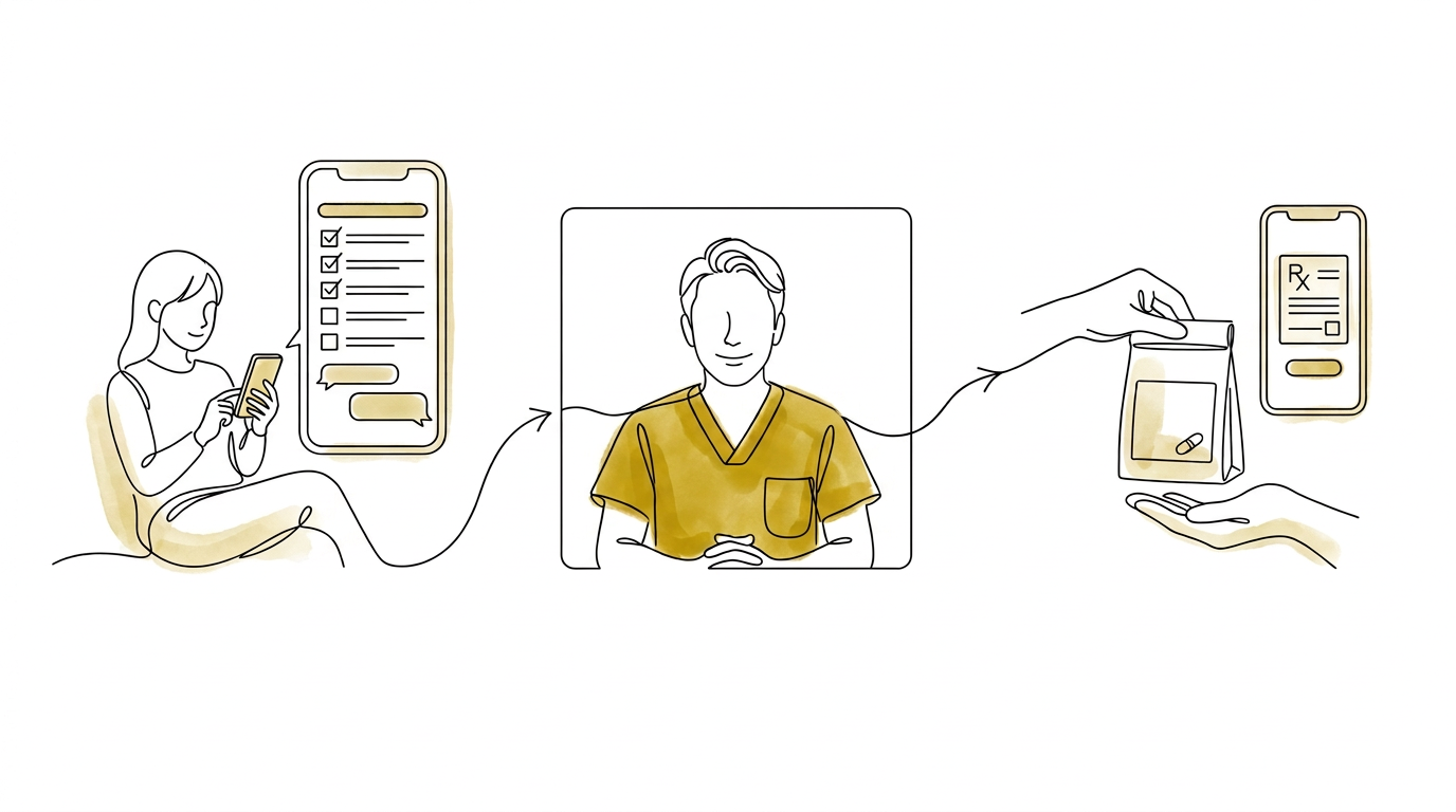 スマートフォンでいくつかの質問にお答えいただき、最後に医師がオンラインで診察を行った上で、お薬を処方いたします。